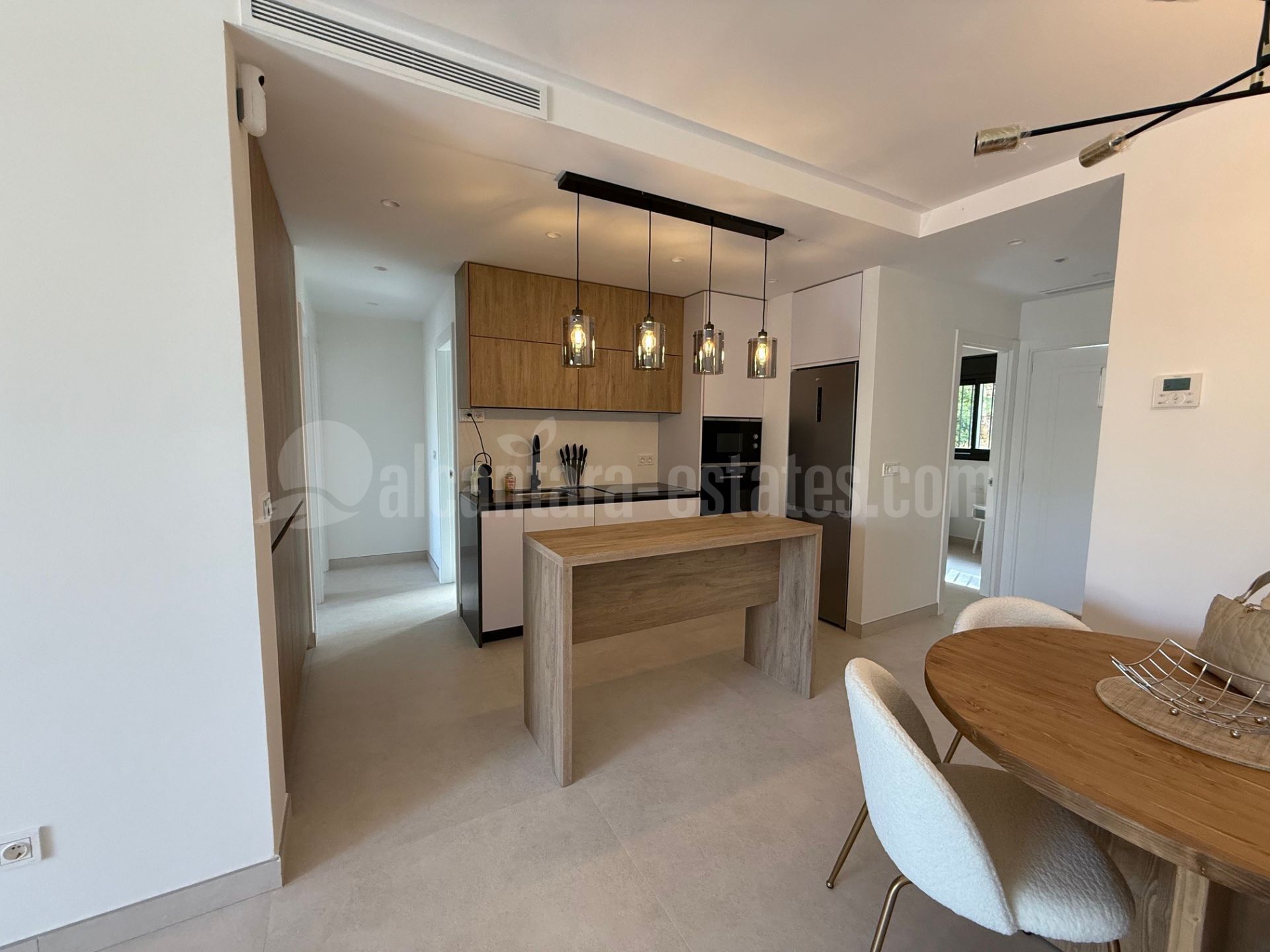 Stunning renovated 3-bedroom apartment with panoramic sea views, located in the desirable area of La Quinta. This beautifully updated property offers a perfect blend of modern comfort and unbeatable location, just minutes from the best golf courses, Puerto Banús, and the beach. The apartment features 3 bedrooms, 2 bathrooms, a spacious open-plan kitchen, and a bright living-dining area with direct access to a generous terrace boasting breathtaking views of the sea and mountains. Renovated throughout with high-quality materials, the apartment also includes a utility room for added convenience. The complex offers covered community parking and access to two swimming pools, all situated right next to La Quinta Golf Course. Ideal for golf lovers or those seeking a peaceful home close to Marbella’s vibrant lifestyle.