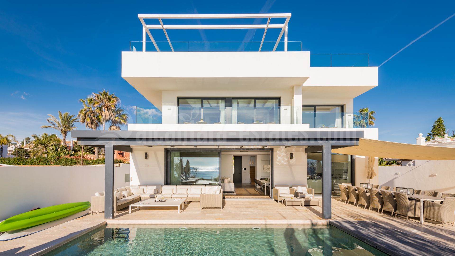 Spectacular South-East Facing Beachfront Villa with Direct Sea Access in Costabella, Marbella