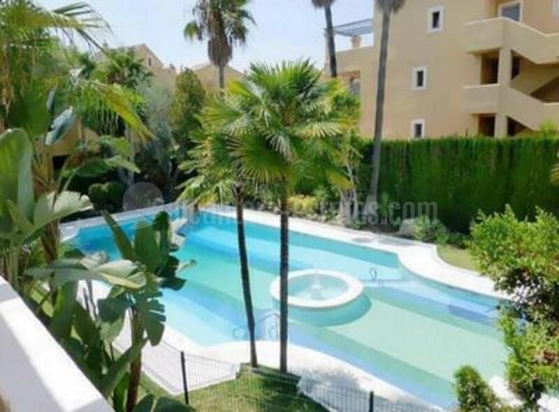 Spacious 5-bedroom apartment in the gated community Rocamar in Nagueles, Golden Mile between Puerto Banús and Marbella, above the AP7. One-storey apartment with 170 m2 built, it has 5 bedrooms, 3 bathrooms, a spacious living room with a fireplace, an equipped kitchen, a magnificent 24m2 terrace with views of the community pool and garden. The urbanization has beautiful garden areas, security 24 hours a day. The apartment includes air conditioning, garage space and a large storage room.