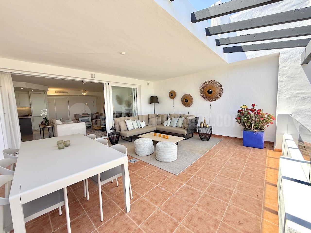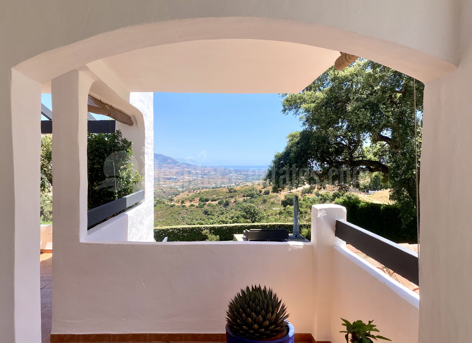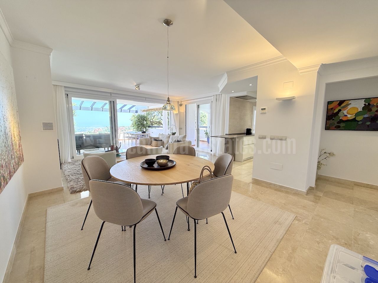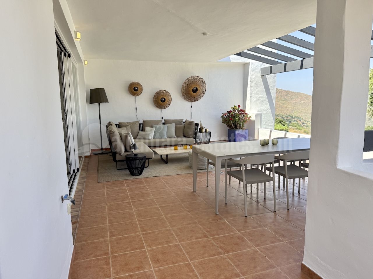 This elegant three-bedroom apartment with 2 private parkings is situated in the sought-after area of La Mairena, Marbella East, offering a harmonious blend of comfort, style, and convenience. The property boasts a generous built area of 148m² complemented by a spacious 53m² terrace, providing ample space for both indoor and outdoor living. Located within a secure gated community, residents benefit from a peaceful environment with mature communal gardens and a large communal pool, perfect for relaxation and leisure.