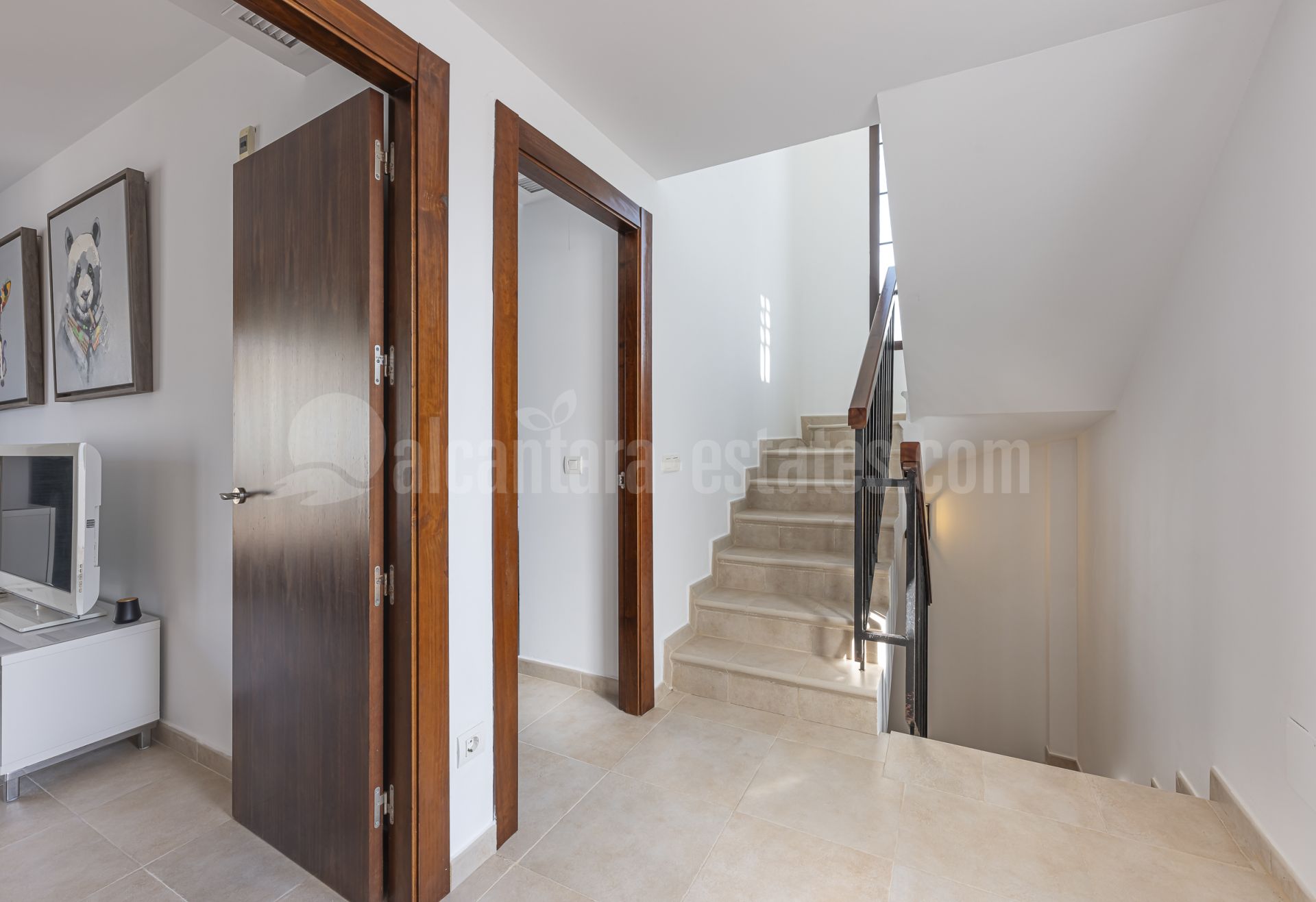 Segunda planta: distribuidor con acceso a una terraza orientada al norte; dormitorio 2 con acceso a una terraza orientada al sur; dormitorio 3 también con acceso a una terraza orientada al sur; baño completo.