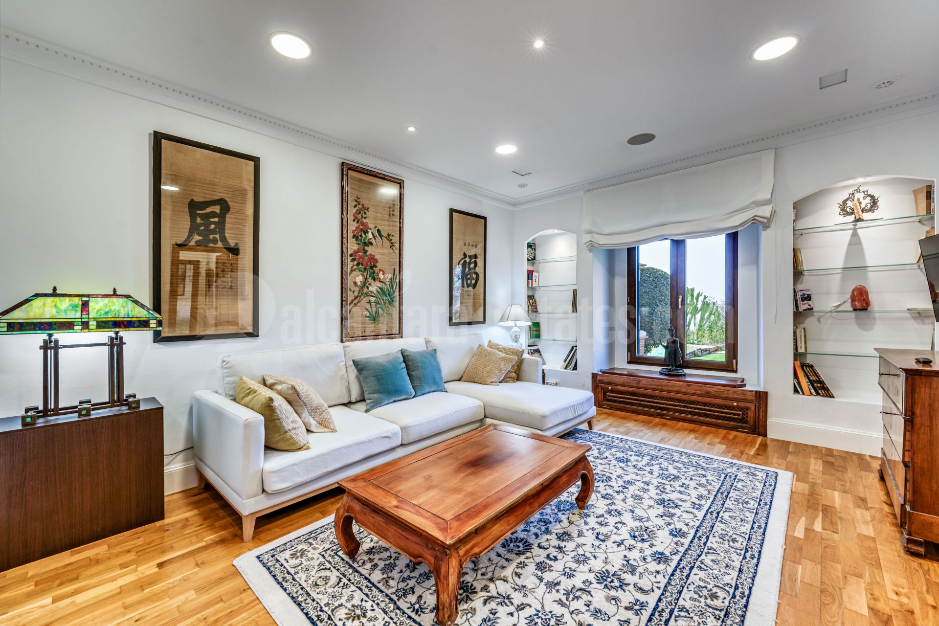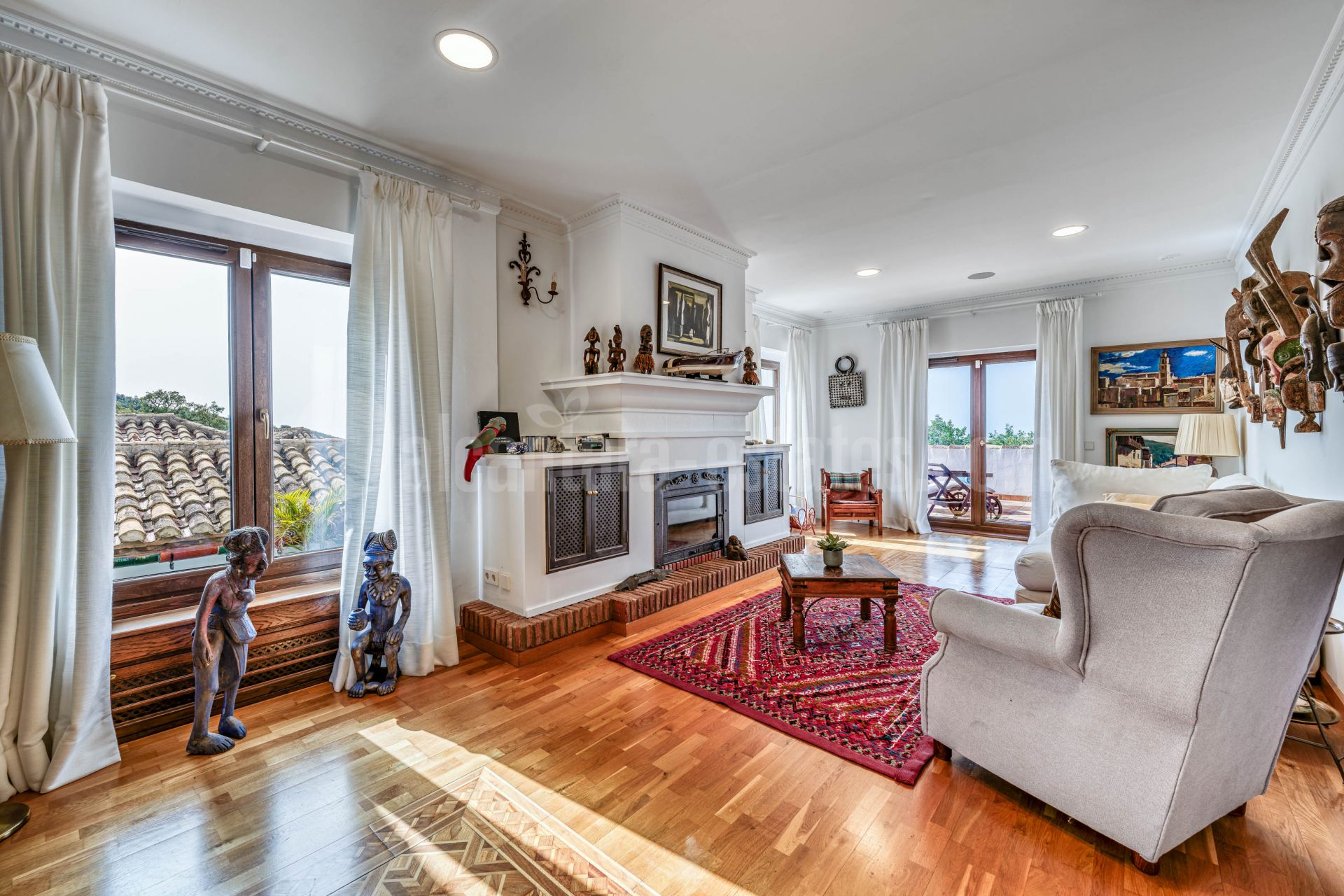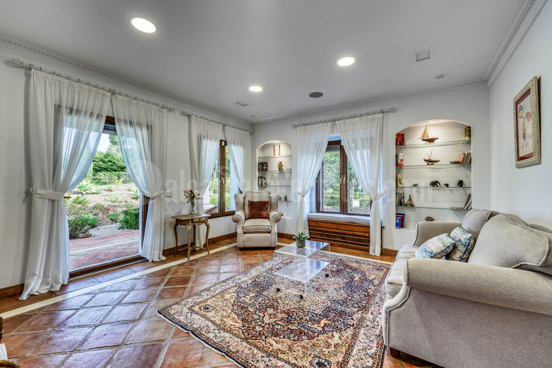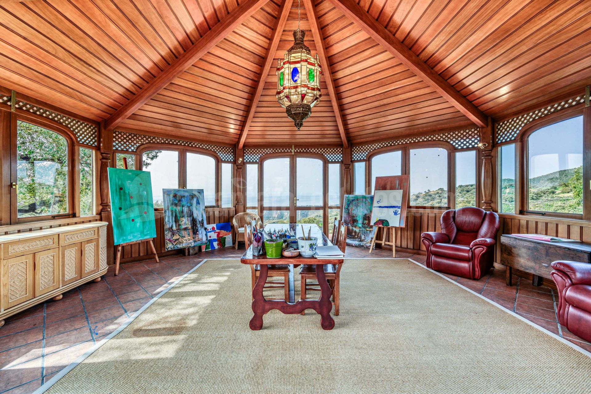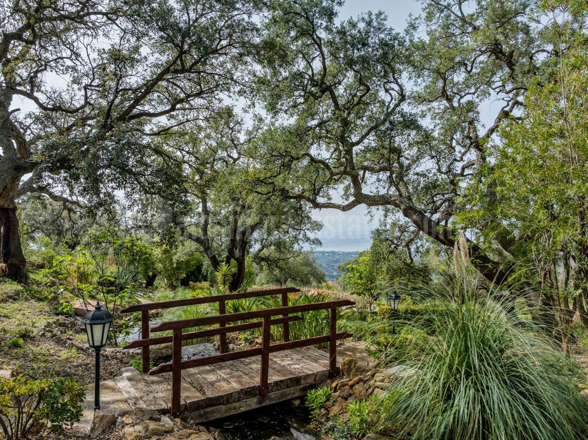 La propiedad está rodeada de jardín impecablemente mantenido, con huertos, árboles frutales, plantas maduras, estanques, elegantes fuentes, esculturas y serenos elementos acuáticos. Además, hay una casita que ofrece vistas panorámicas de 360 grados y sirve de espacio dedicado a la pintura o los pasatiempos.