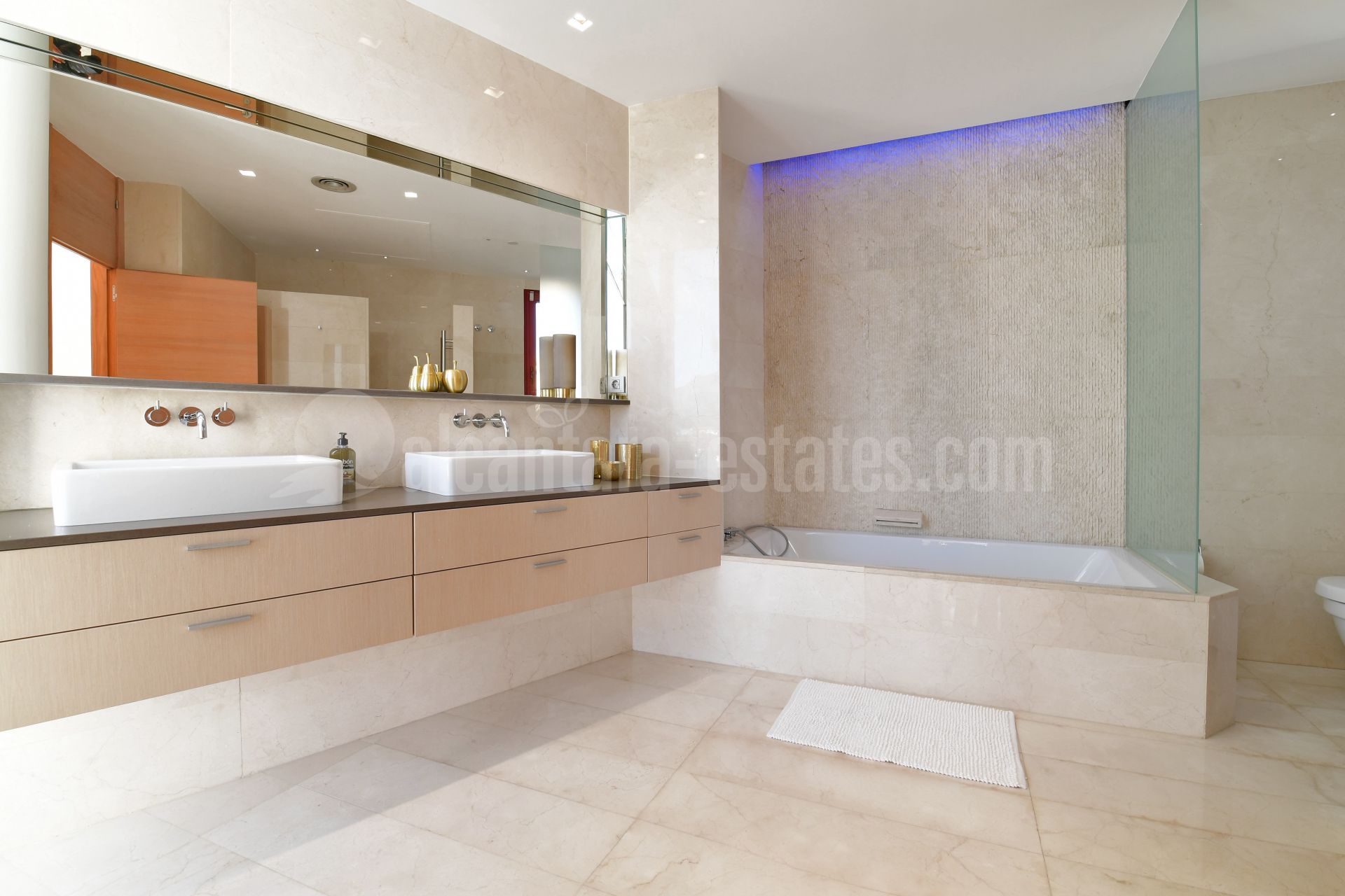 Sus 7 dormitorios se encuentran bien separados para conseguir una total privacidad. Encontrará dos dormitorios principales en el segundo nivel con acceso al bar y al salón. El impresionante dormitorio principal es espacioso, con un gran baño en suite y vistas al valle y al mar. La planta baja incluye 5 dormitorios con 6 camas king size y 4 baños en suite, todos con acceso a la terraza y a la zona de la piscina. También encontrará un gimnasio al aire libre y un salón, así como una sala de cine y de juegos.