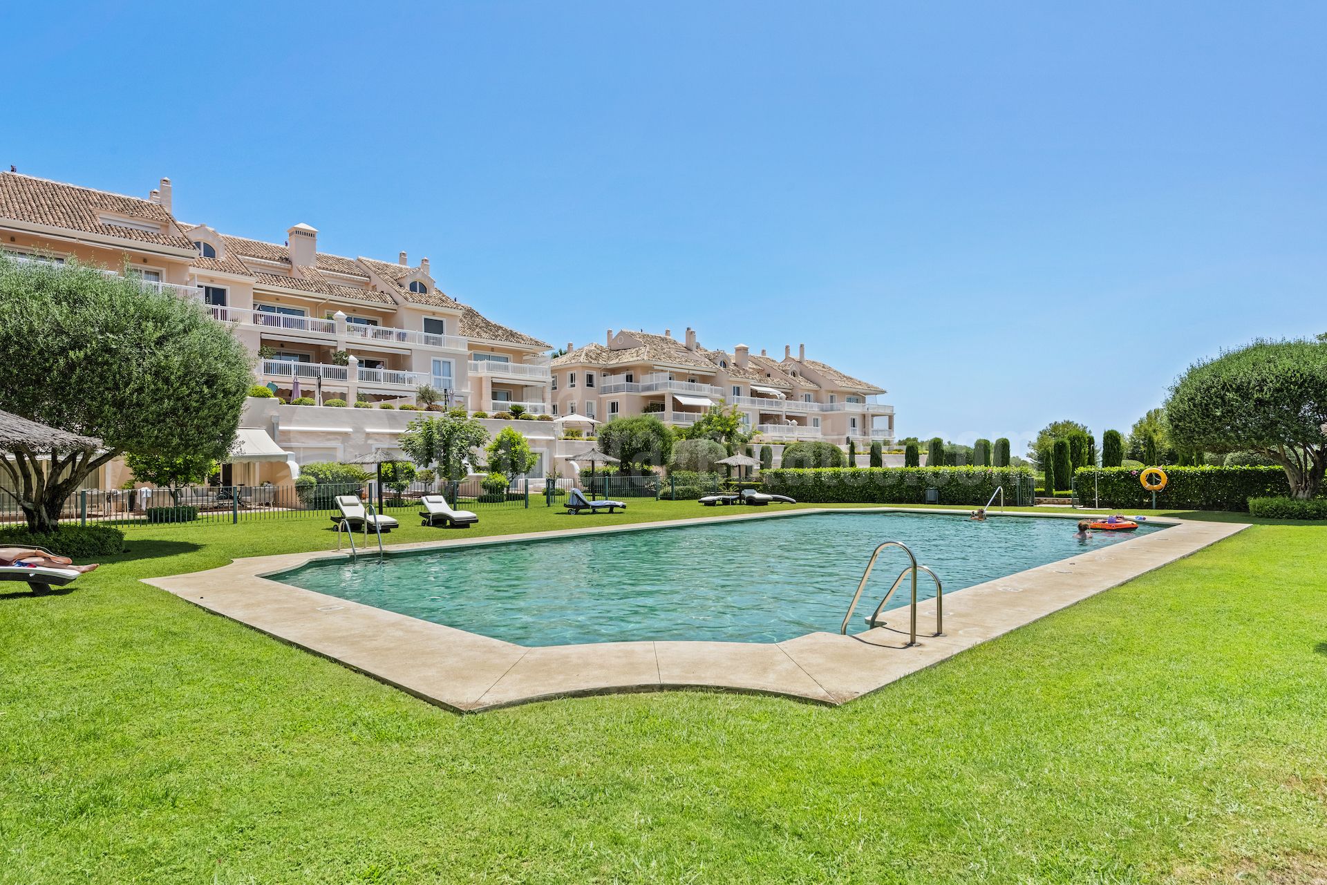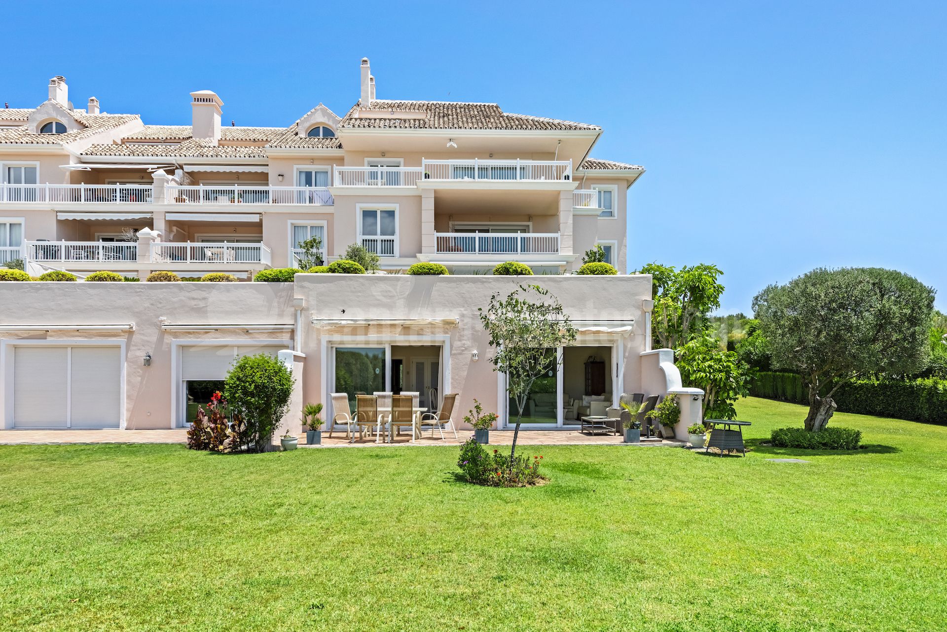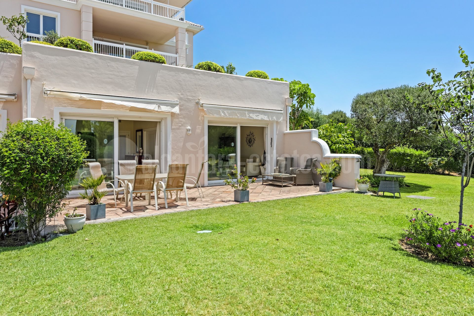 Un apartamento en planta baja verdaderamente especial, que se siente como una finca privada gracias a sus amplias terrazas que se abren directamente a los exuberantes jardines, creando una excepcional sensación de privacidad, amplitud y conexión con la naturaleza.
