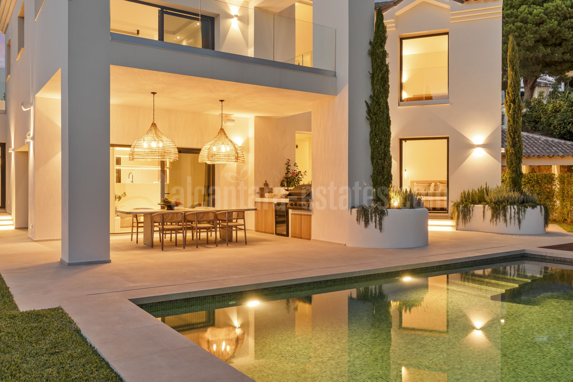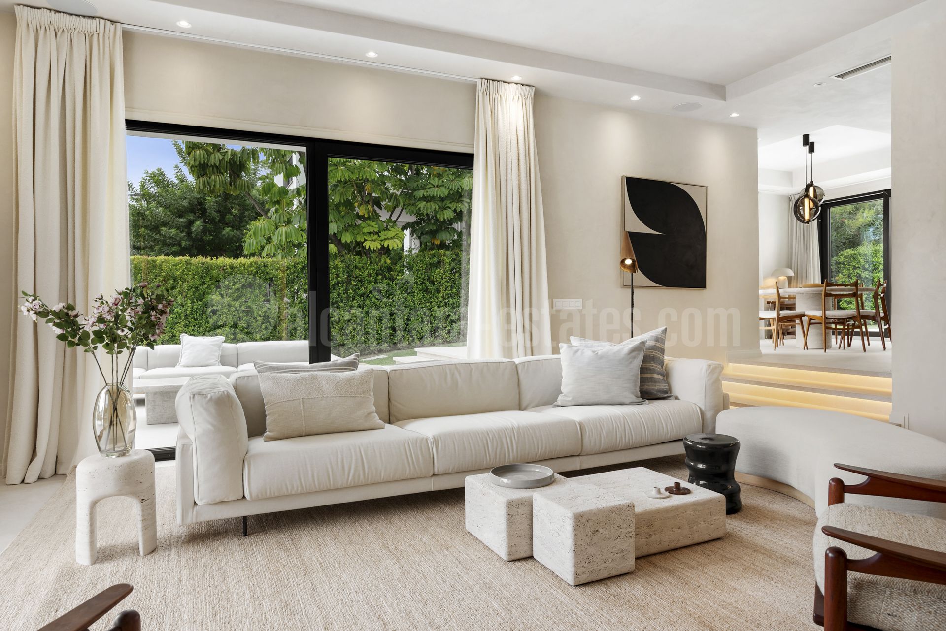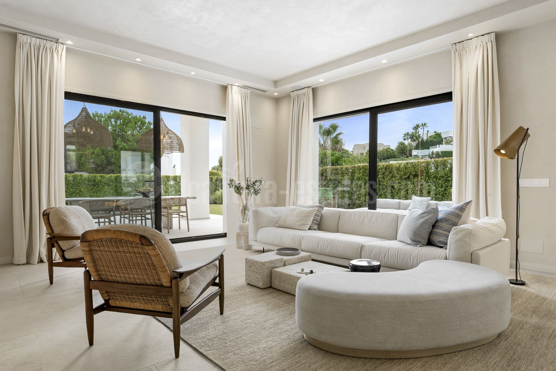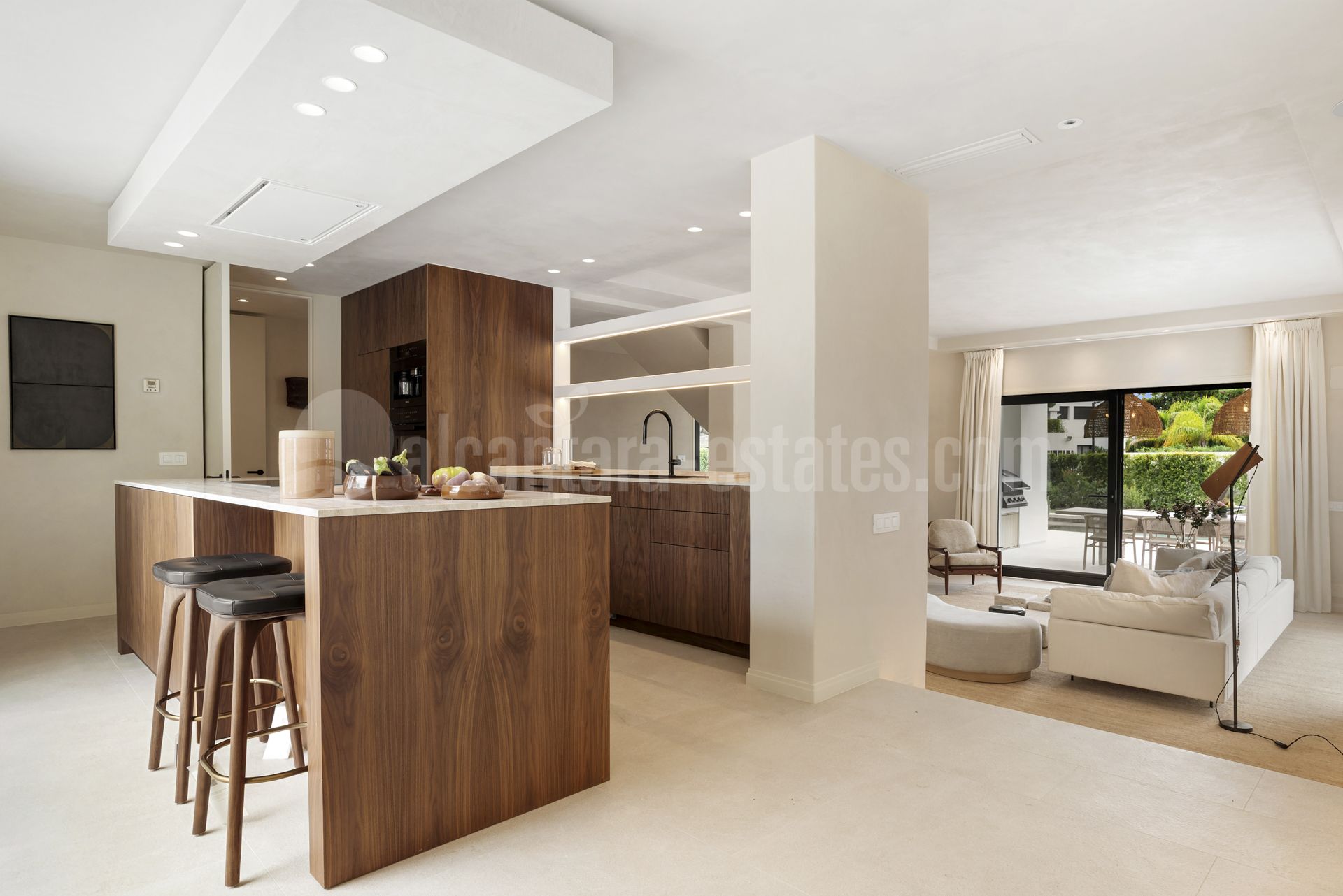 El interior se abre a un espacioso y luminoso concepto de planta abierta, con una cocina gourmet totalmente equipada con electrodomésticos Miele de alta gama, que se integra de manera armoniosa con las amplias áreas de salón y comedor. Pensada para el máximo confort durante todo el año, la propiedad cuenta con aire acondicionado, calefacción y suelo radiante en dormitorios y baños.