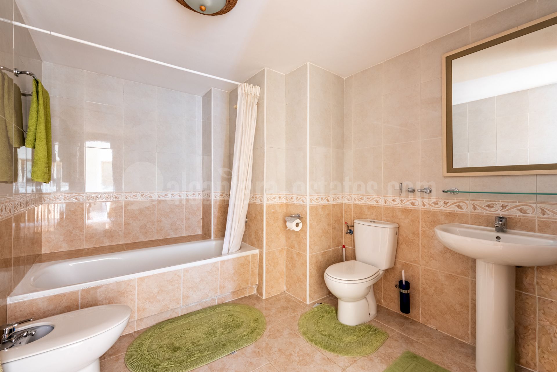 En la planta superior, se encuentra una lujosa suite principal con un amplio baño en suite y su propia terraza privada, ofreciendo un refugio tranquilo con preciosas vistas. También hay un dormitorio adicional para invitados, con baño en suite y terraza privada, completando así un alojamiento generoso en toda la vivienda.