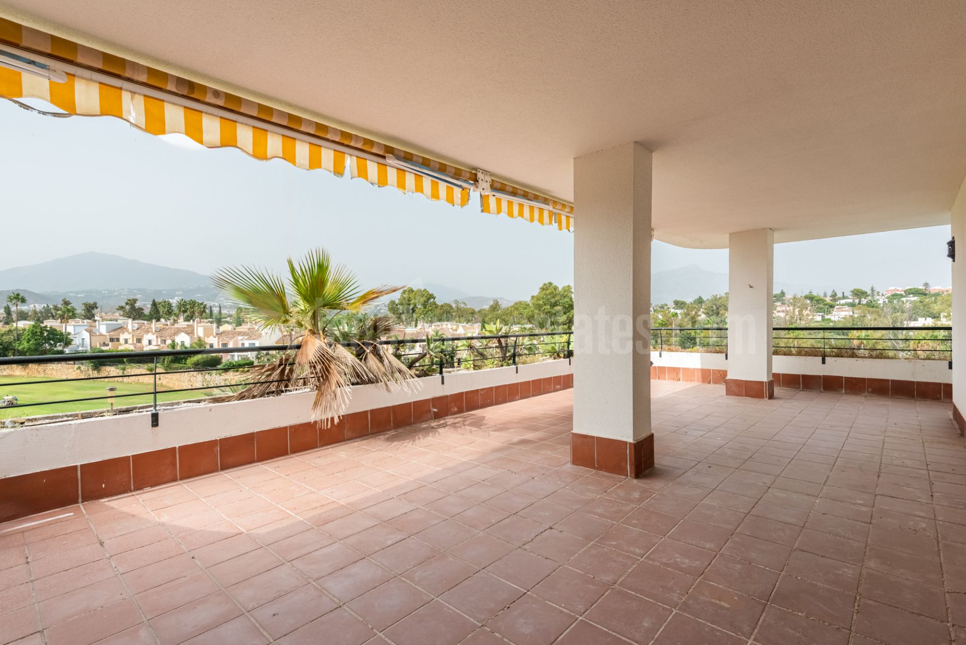 Este excepcional ático dúplex ofrece una combinación poco común de tamaño, ubicación y potencial de reforma. Con una impresionante superficie construida de 220 m² y 120 m² de terrazas, esta propiedad en primera línea de golf es una oportunidad destacada en la codiciada zona de Guadalmina Alta. Tanto si buscas una espaciosa vivienda permanente, una casa de vacaciones o una oportunidad de inversión, esta propiedad lo tiene todo.