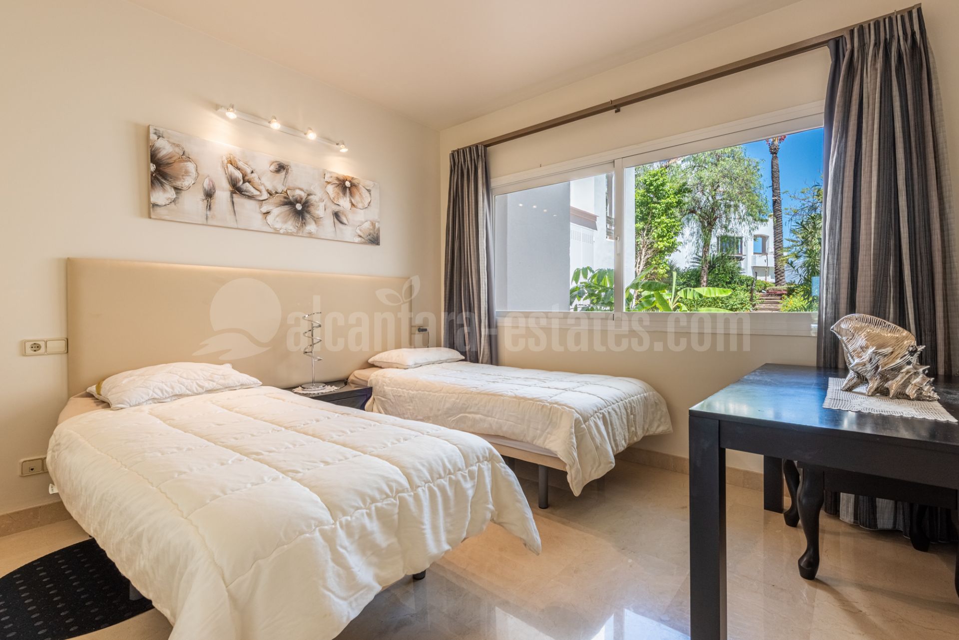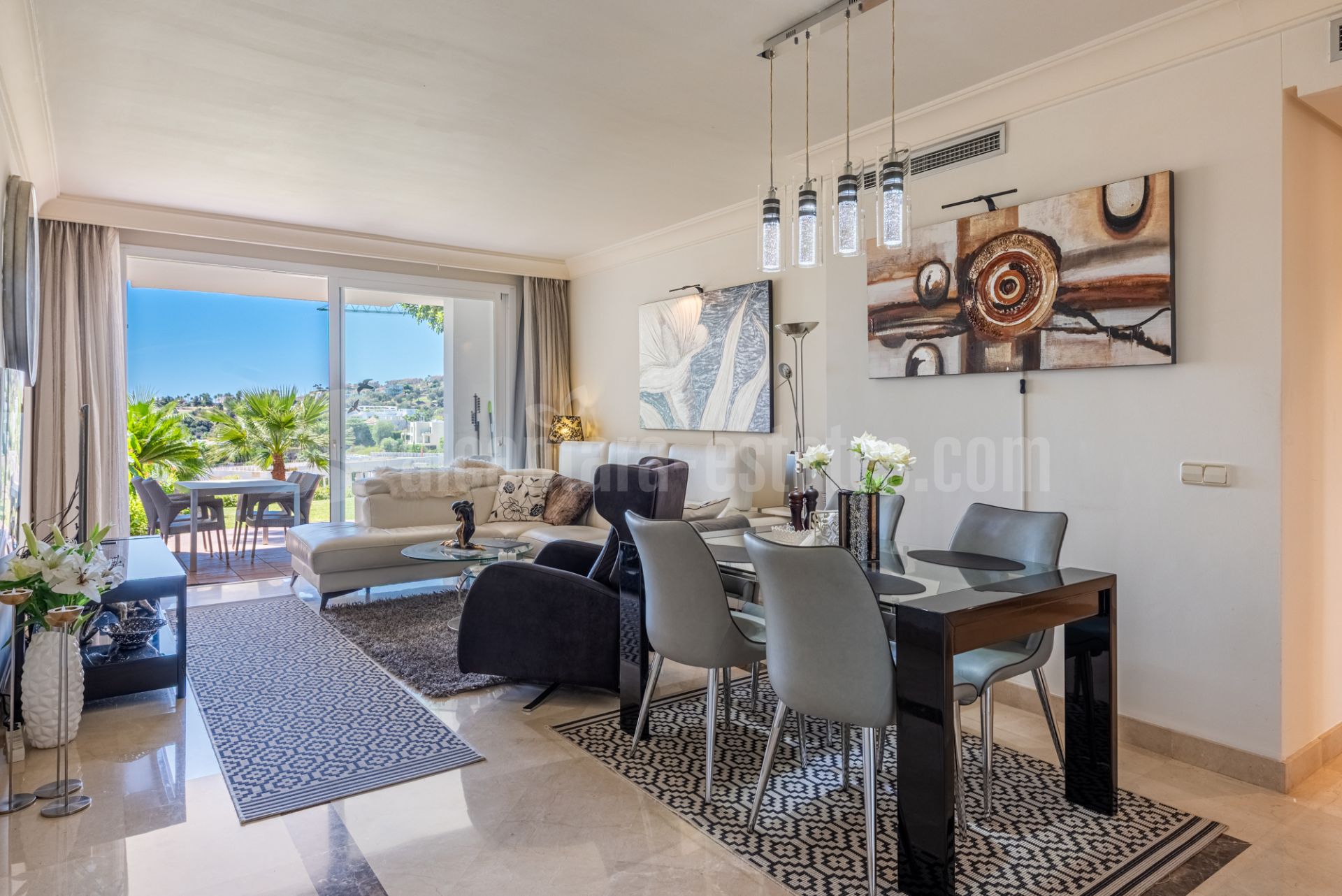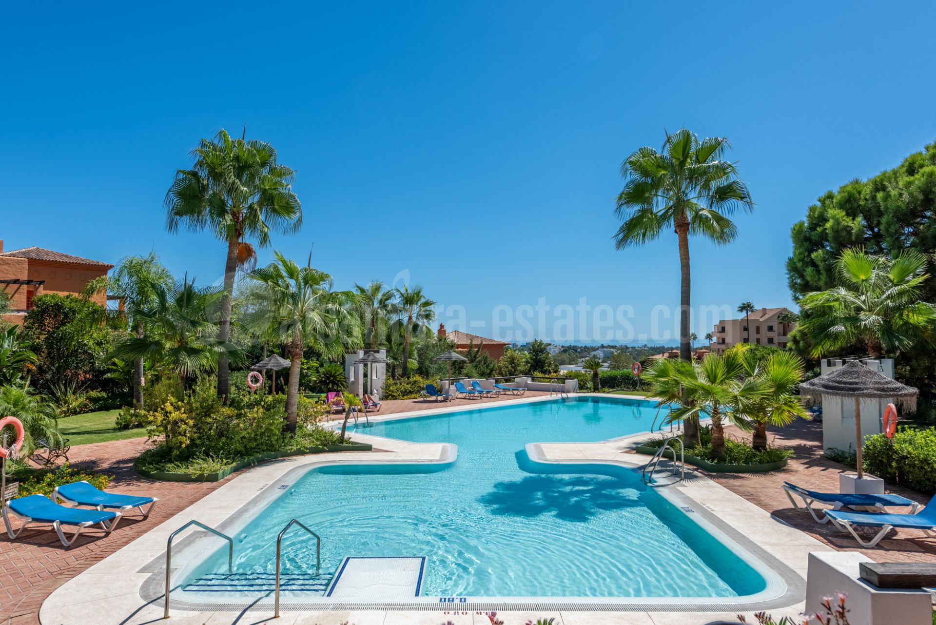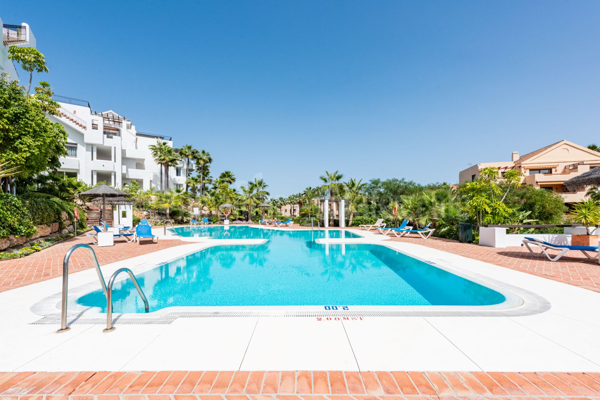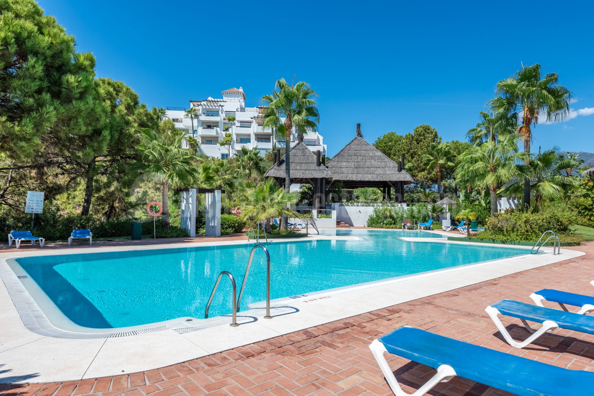 La comunidad es reconocida por sus hermosos jardines y su diseño de baja densidad, que ofrece privacidad y espacio. Los residentes disfrutan de acceso a dos piscinas comunitarias, un gimnasio y la tranquilidad de la seguridad las 24 horas. El apartamento también incluye una plaza de aparcamiento subterránea privada y un trastero.