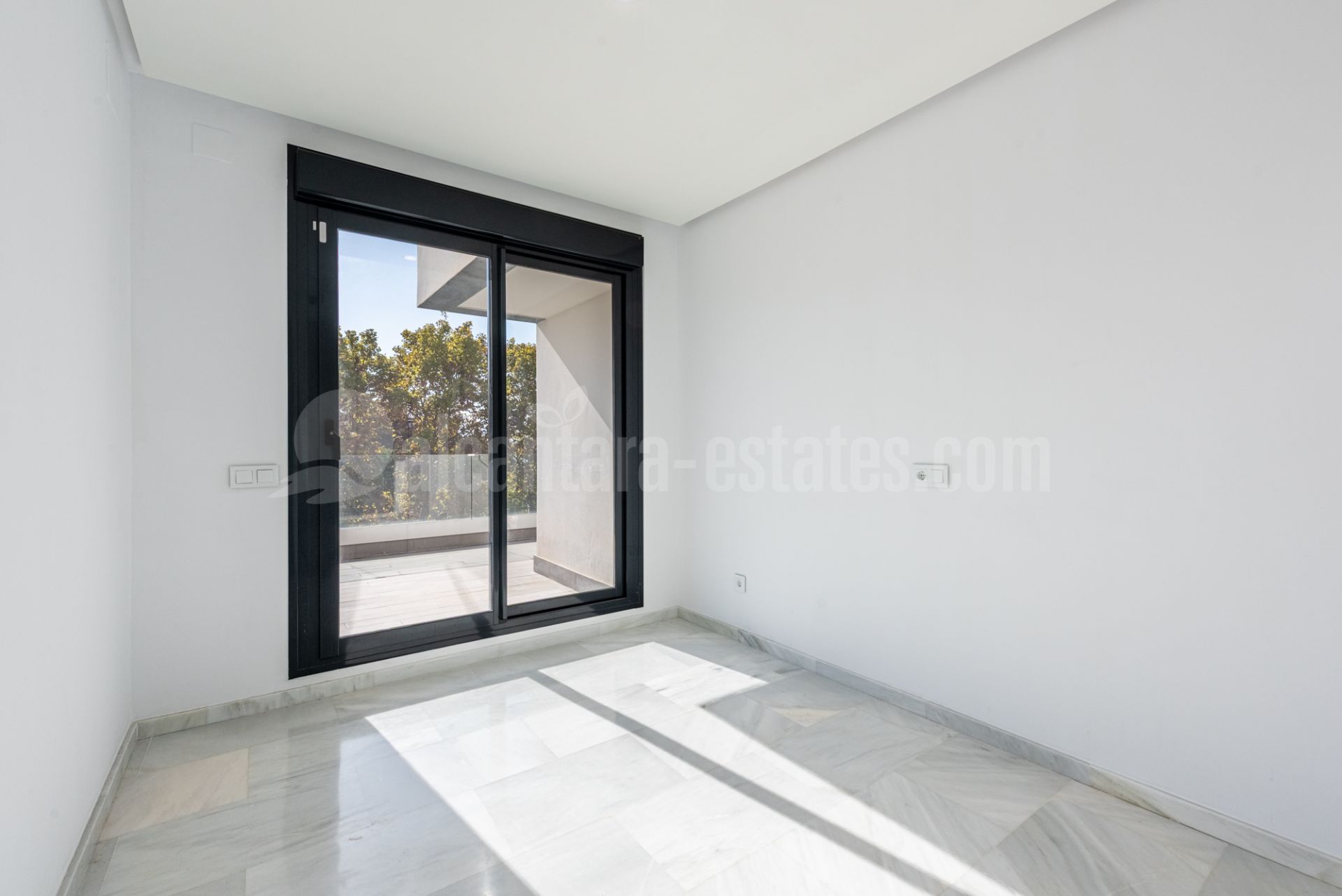 El apartamento cuenta con tres dormitorios, cada uno con acceso directo a la terraza, creando un estilo de vida interior–exterior sin interrupciones. La distribución de planta abierta y los acabados modernos otorgan a la propiedad una sensación fresca y elegante en todos sus espacios.