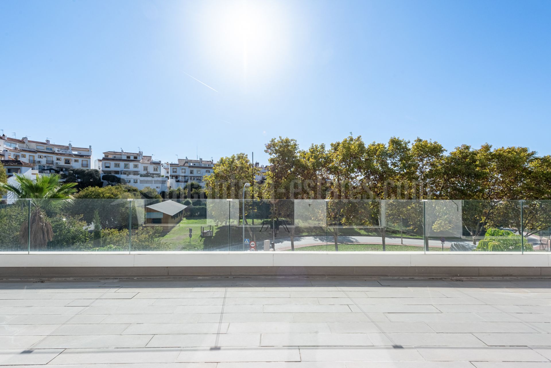 Descubra la vida moderna a solo minutos del centro de Marbella en este elegante apartamento, construido en 2020 y perfectamente ubicado justo detrás del centro comercial La Cañada.