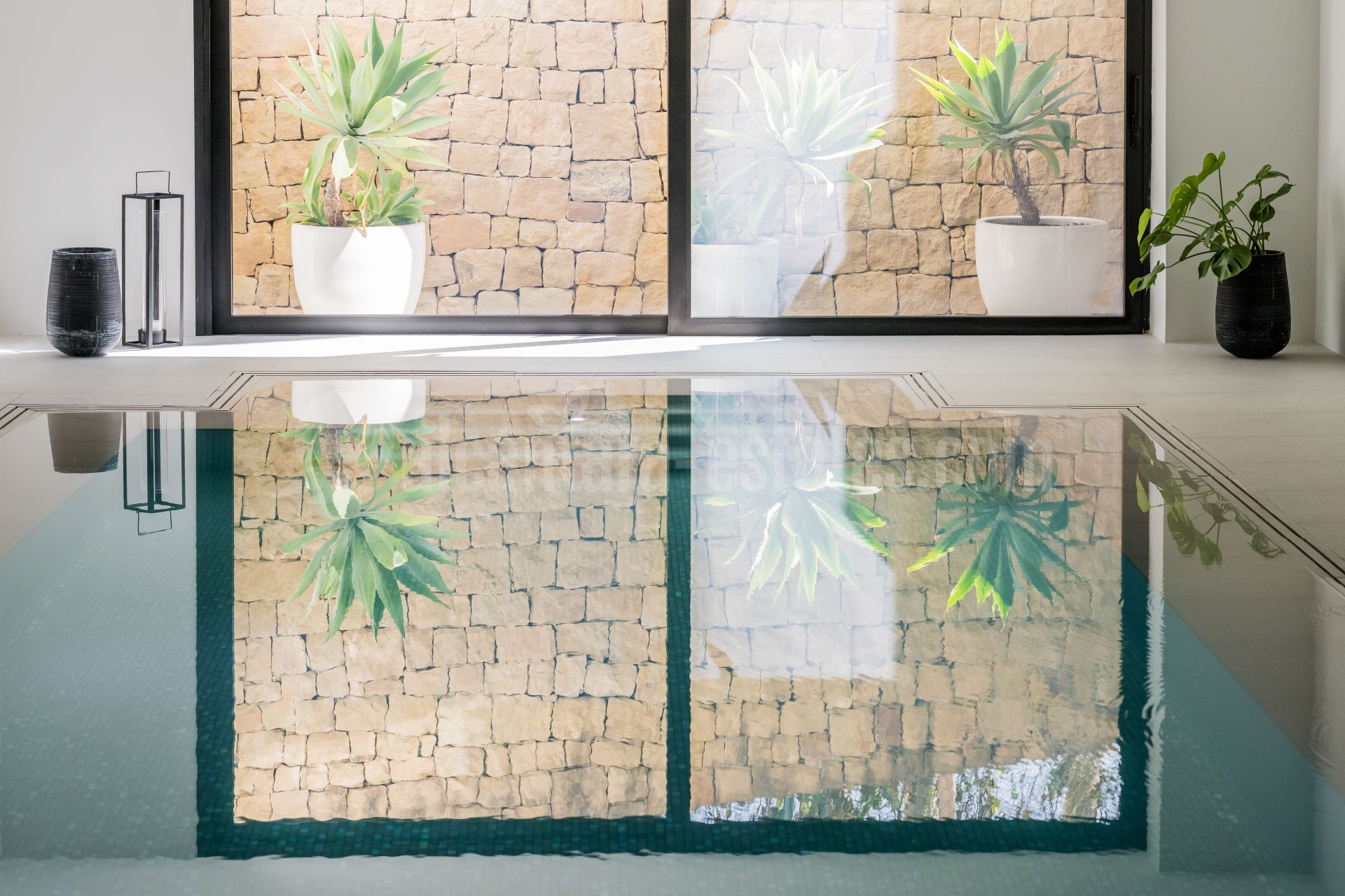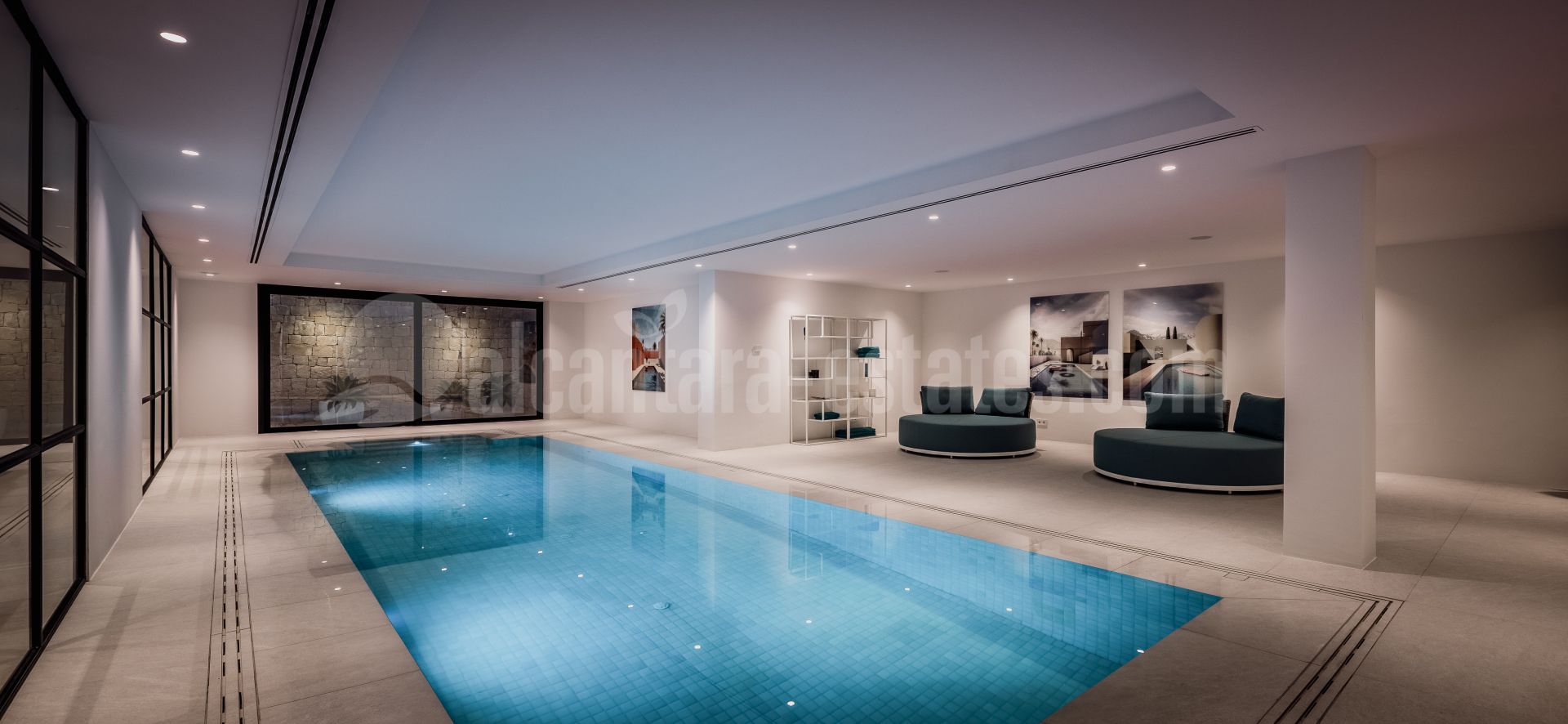 En la planta inferior se encuentran instalaciones que normalmente se asocian con una propiedad en La Zagaleta, comodidades muy buscadas y raramente encontradas en esta ubicación. Un patio interior y una zona de descanso adyacente ofrecen una piscina cubierta de tamaño completo con luz natural y ventilación, que también podría ser utilizada como área de yoga / tratamiento. Una hermosa sauna y área de ducha se accede a través del área de la piscina, y un enorme gimnasio profesionalmente equipado con vistas a la piscina cubierta. Este nivel también cuenta con una bodega de vinos equipada, un lujoso cine en casa, una lavandería y un garaje para 2/3 coches con entrada privada separada y un amplio trastero. El jardín maduro cuenta con una hermosa piscina con una zona poco profunda para niños, dos terrazas para tomar el sol y un amplio espacio para que los niños jueguen de forma segura y en completa privacidad de los vecinos. La Cerquilla es la comunidad más prestigiosa de Nueva Andalucía y cuenta con vigilancia de video las 24 horas.