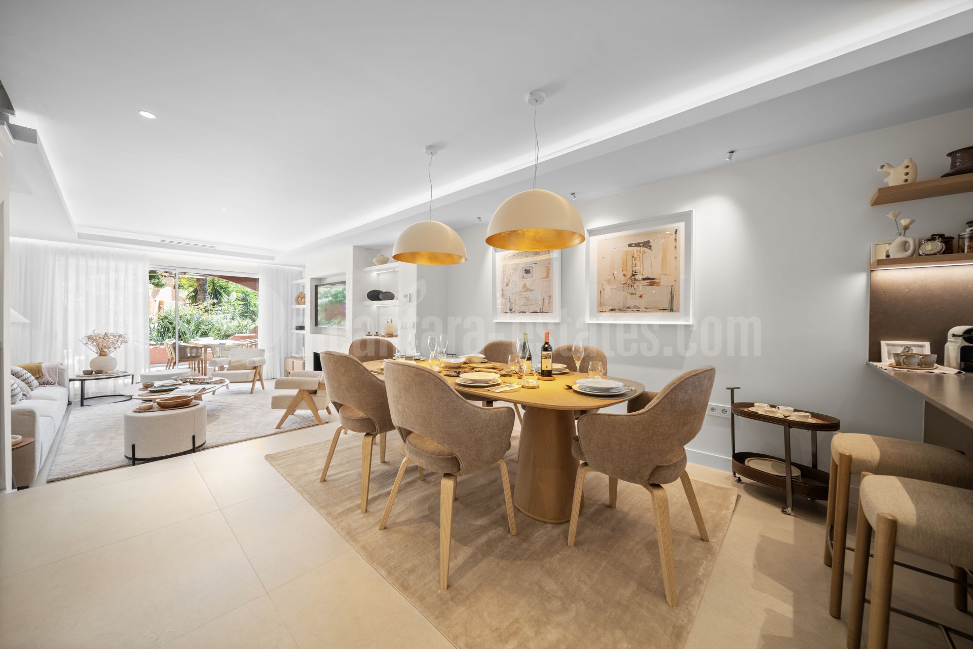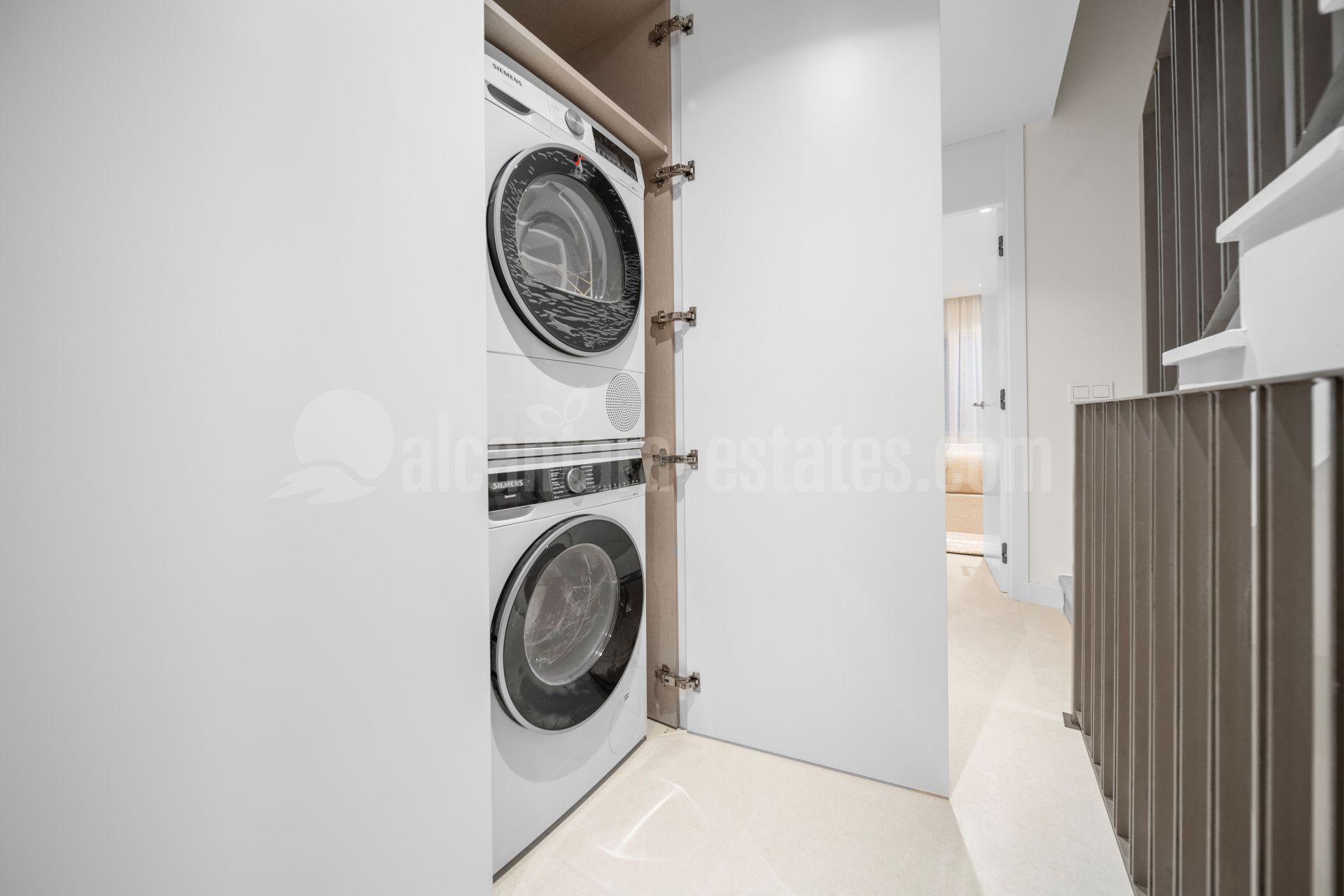 Cada característica de esta residencia ha sido cuidadosamente curada para ofrecer un estilo de vida de confort y sofisticación. Cada dormitorio cuenta con un baño en suite y su propia terraza privada, y hay un aseo para invitados para conveniencia. La cocina de planta abierta de Santos es un punto focal, perfecto tanto para la vida cotidiana como para el entretenimiento, mientras que el salón es mejorado por una chimenea de planika y acceso directo a una terraza cubierta. Doble acristalamiento, persianas eléctricas, toldos eléctricos y un sistema de hogar inteligente garantizan la comodidad y la tranquilidad de la mente, mientras que la calefacción por suelo radiante en los baños y la aertermia proporcionan control climático durante todo el año.