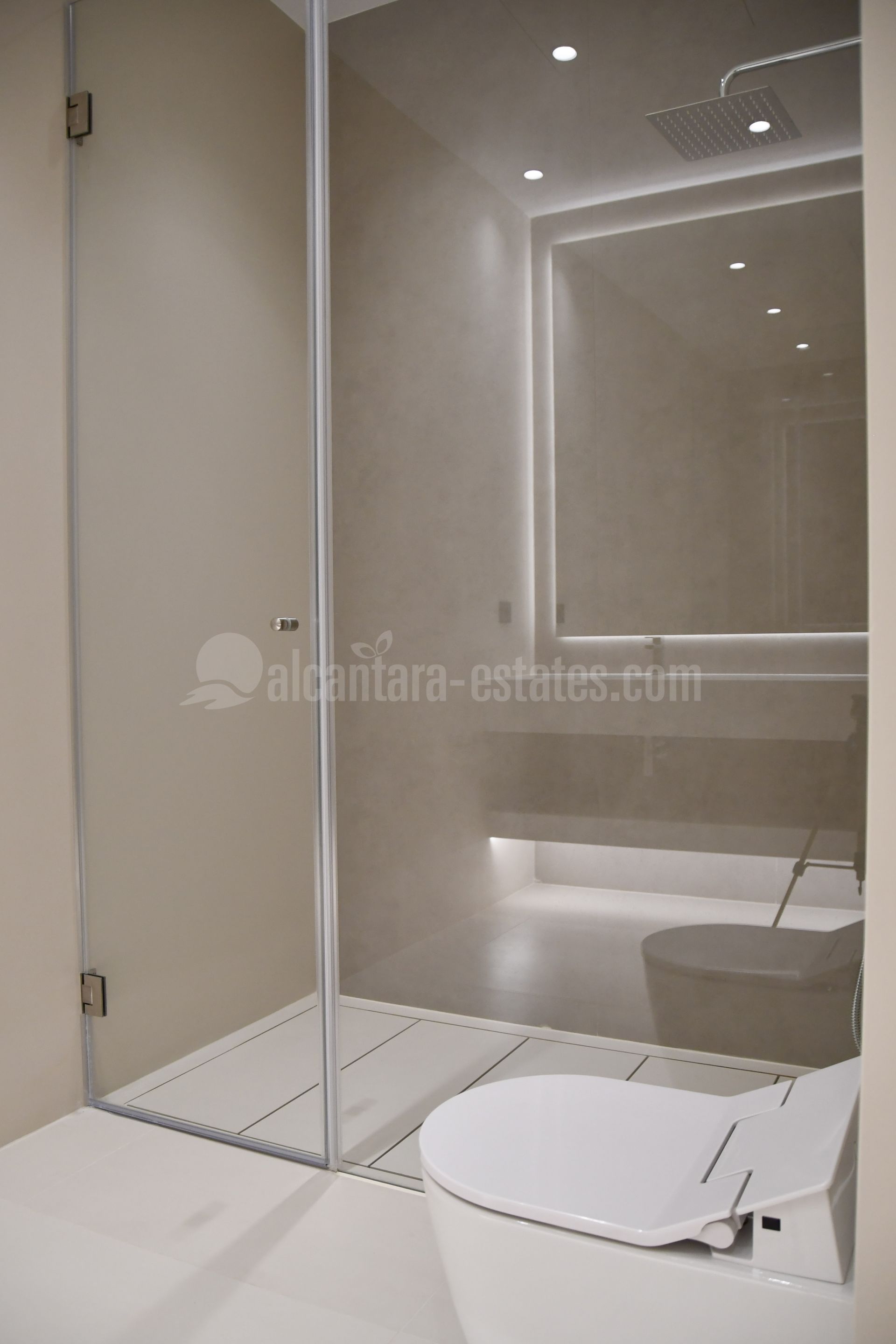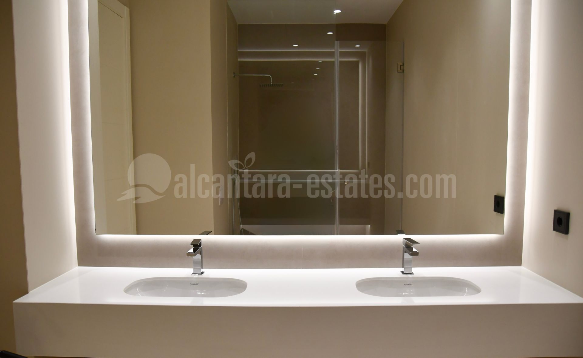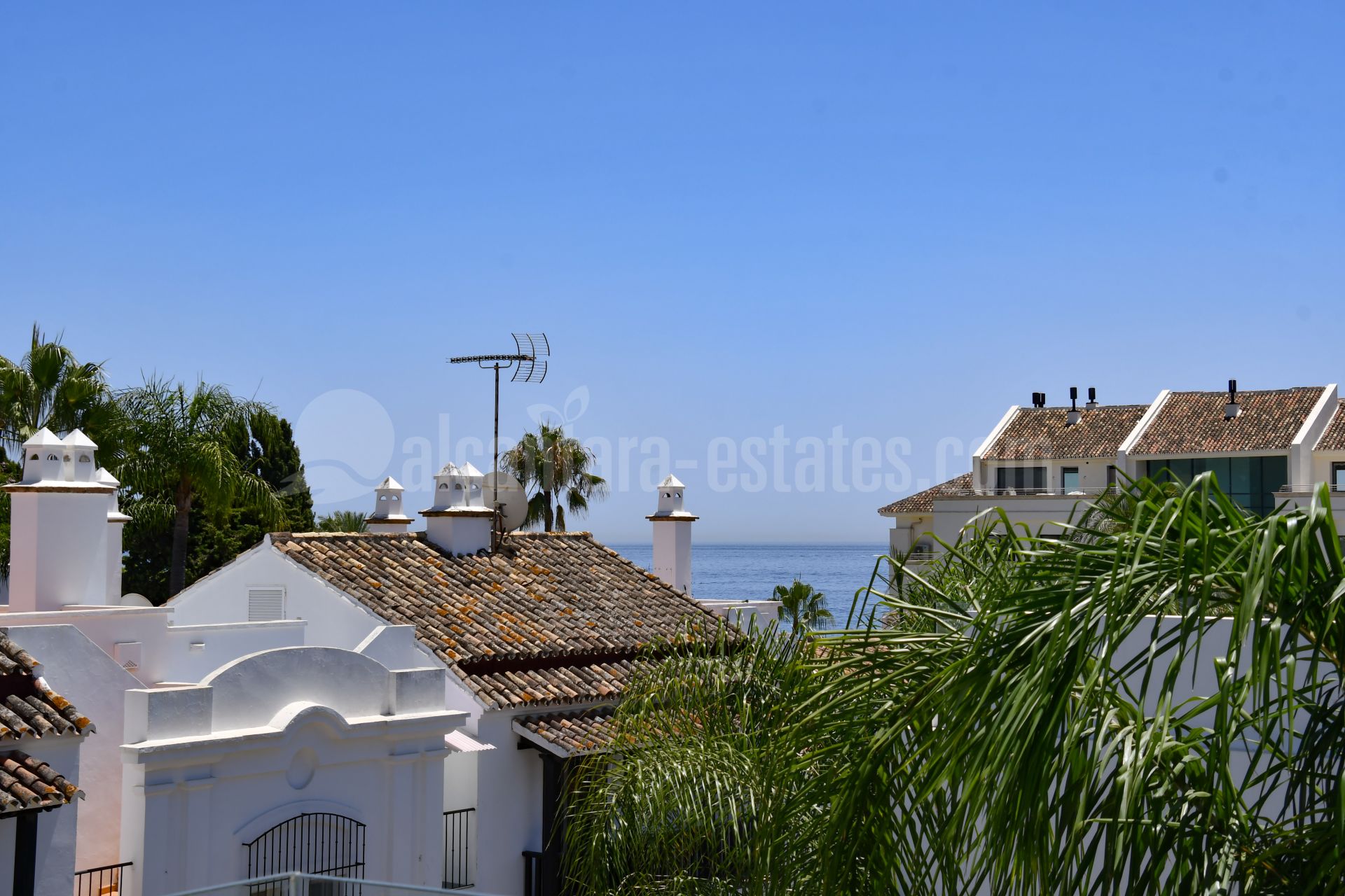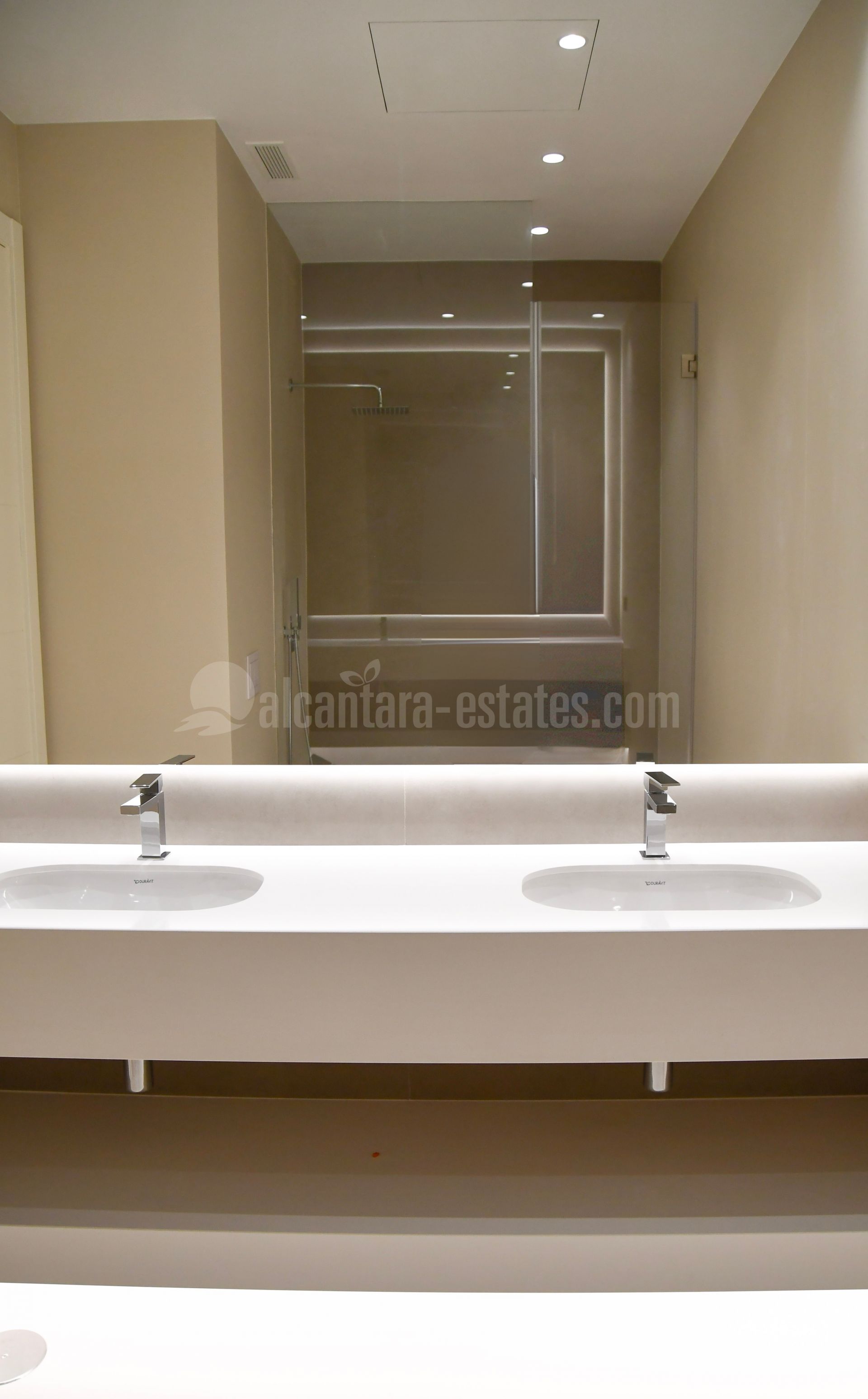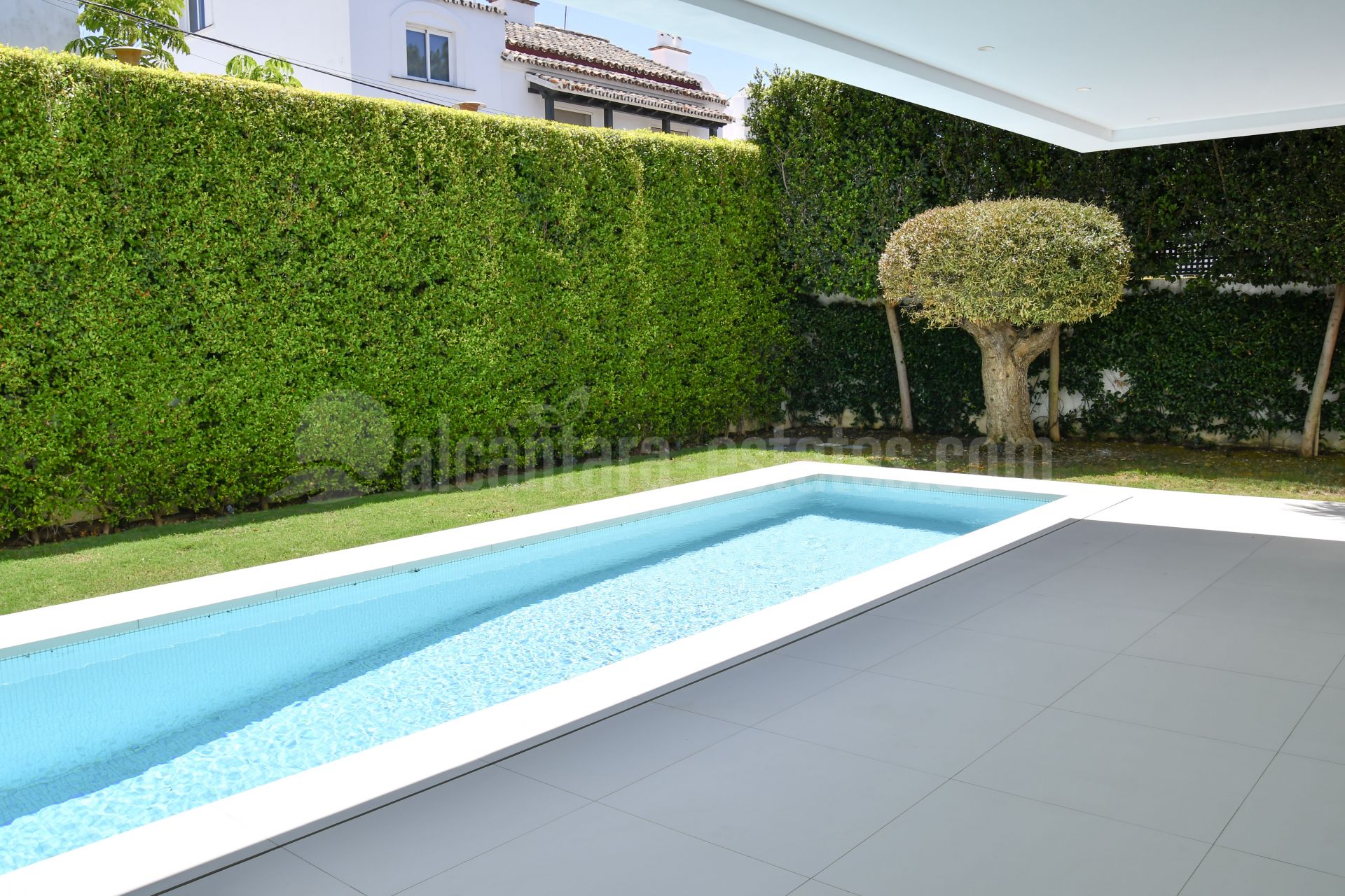 La villa en la Milla de Oro está ubicada cerca de la playa, a tres minutos a pie de Puerto Banús y a poca distancia de los supermercados.