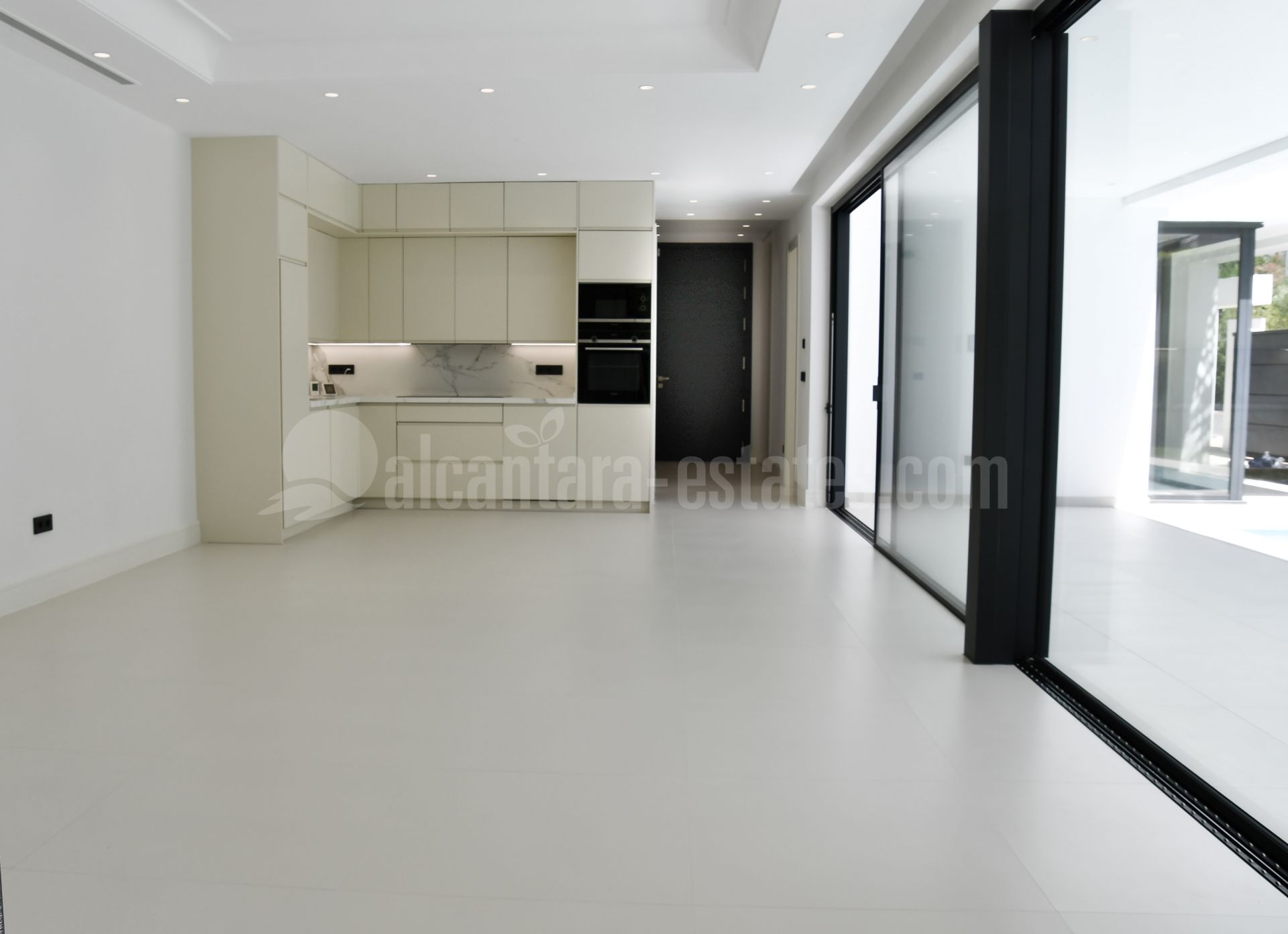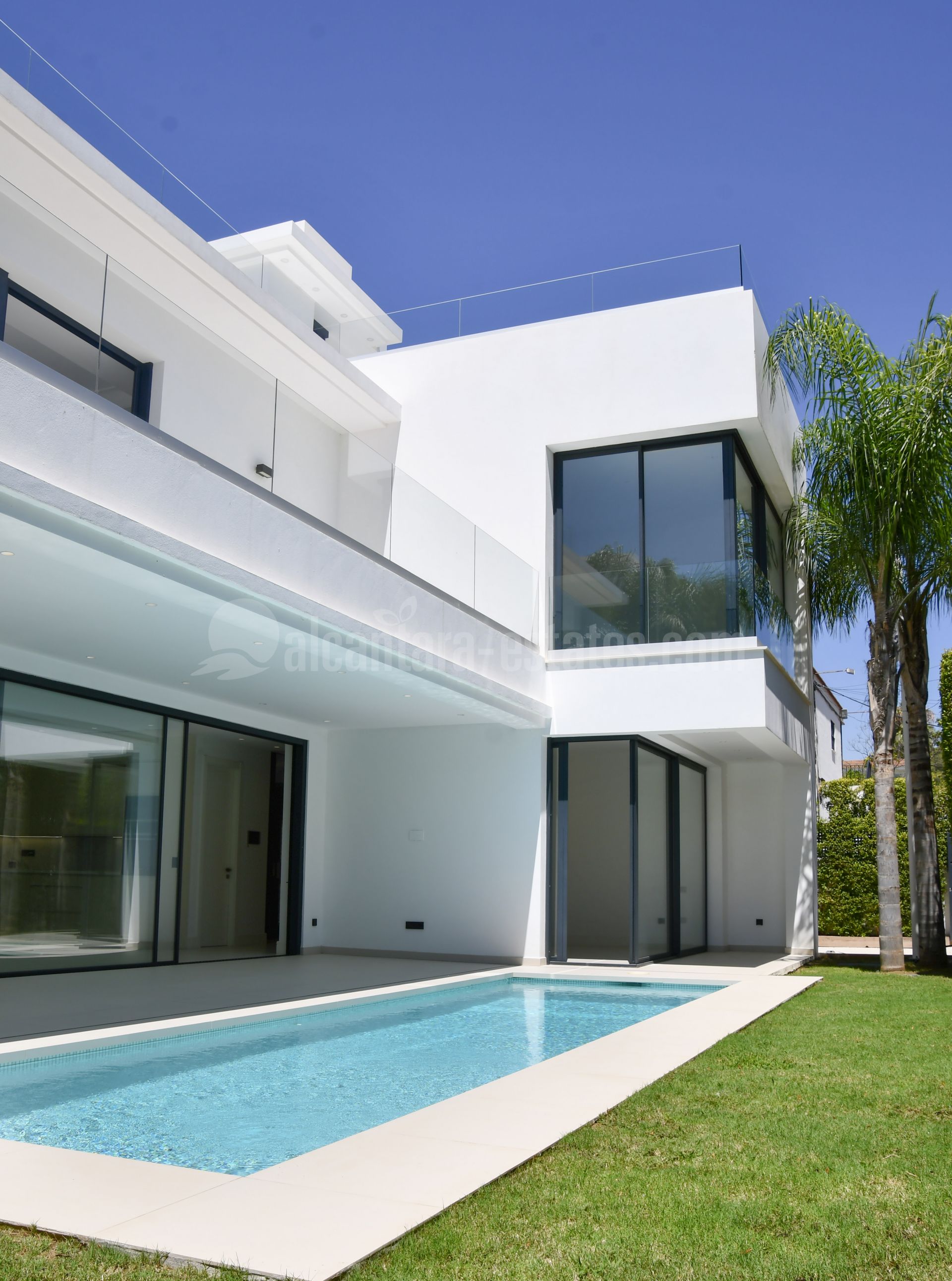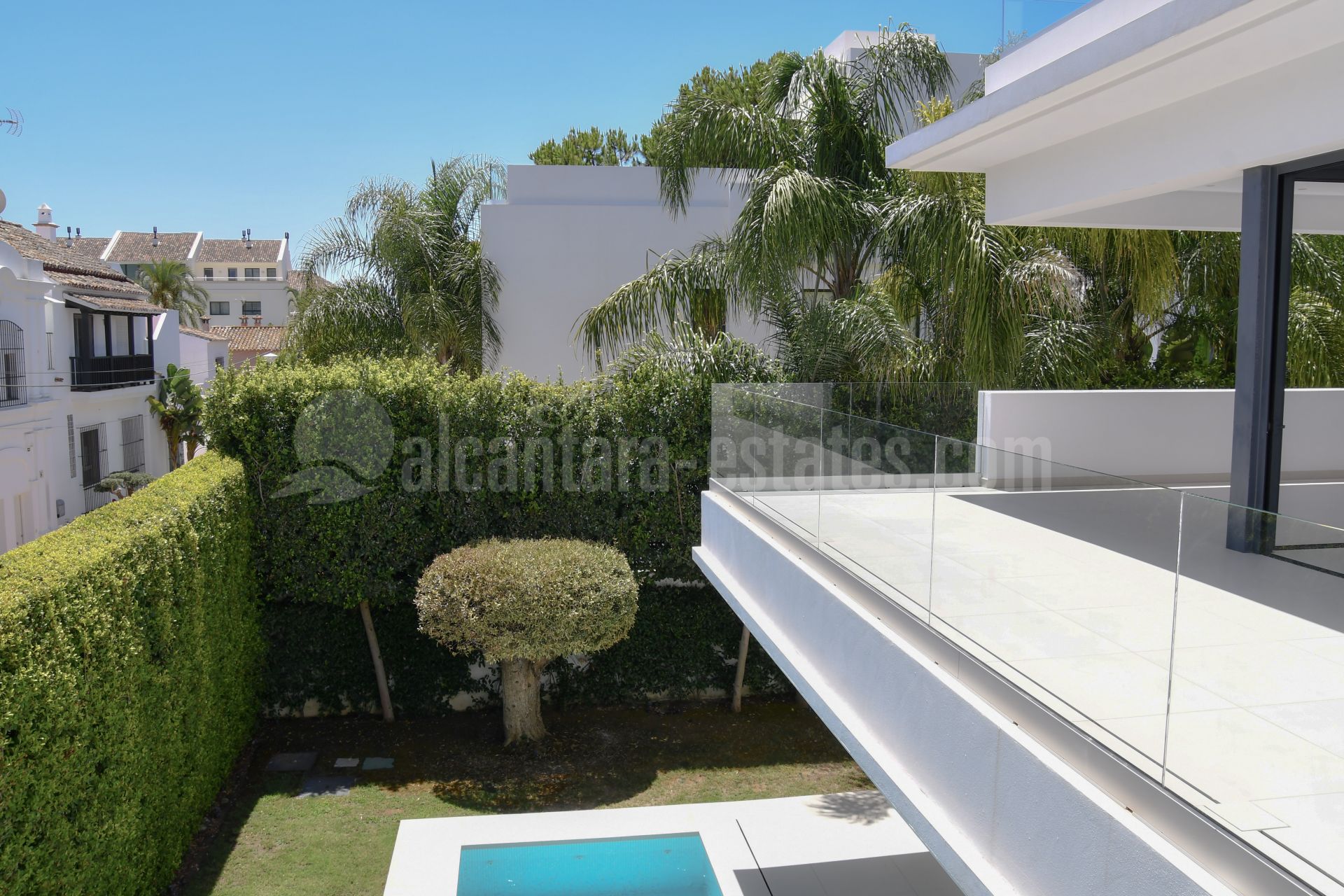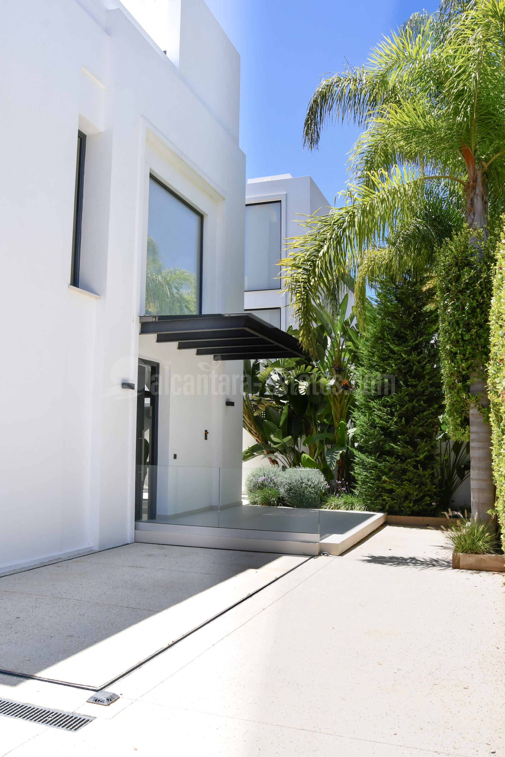 Una magnífica nueva villa moderna en venta que se encuentra en una de las zonas residenciales más lujosas de Marbella: la Milla de Oro, en la segura urbanización Río Verde, a solo 100 metros de la playa.
